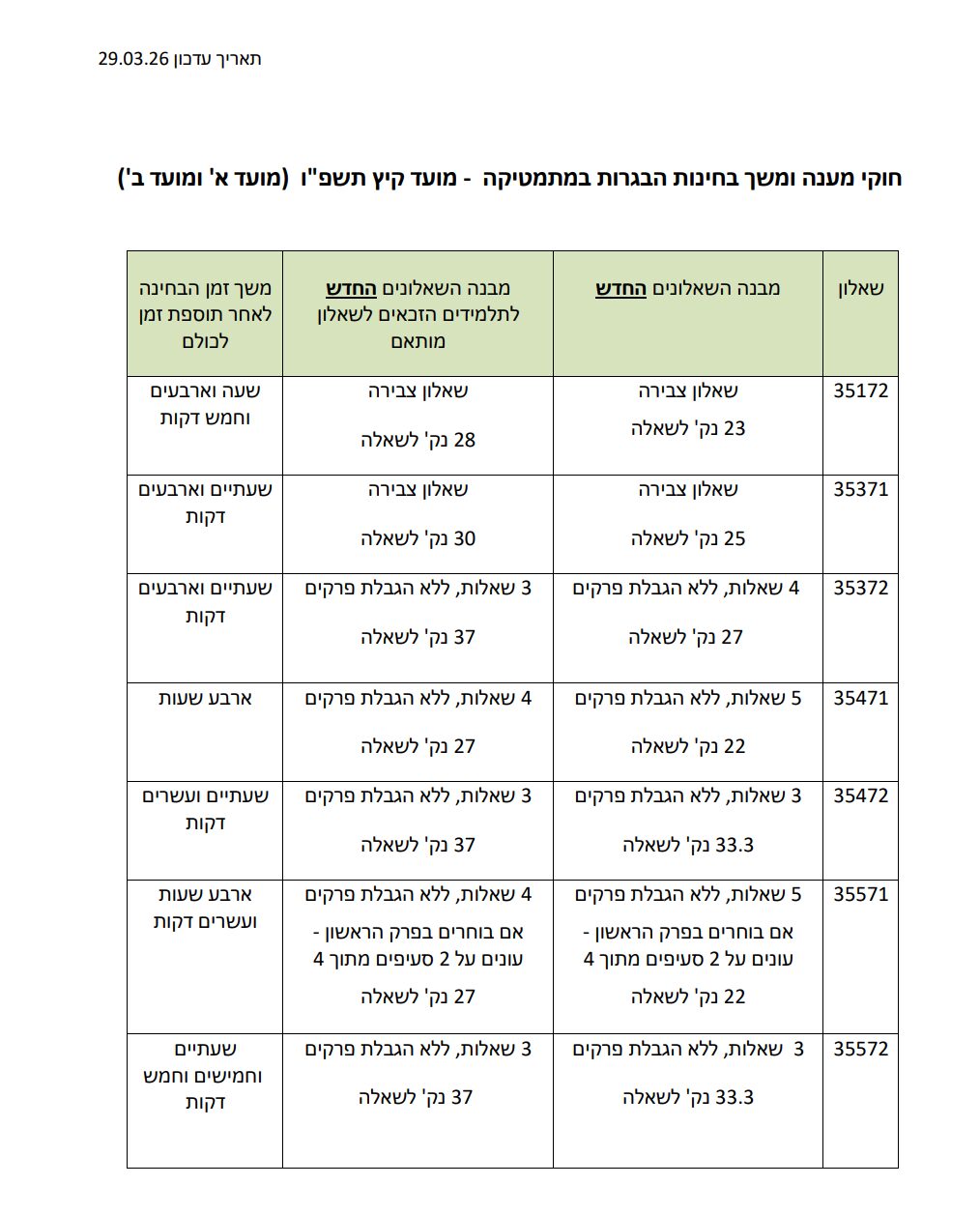 חדש!! לחוקי המענה כולל מותאמים ( התפרסם ב29.3.26) לחץ כאן